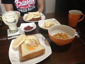 테잇아웃해서 딸기쨈과 하루야채잼 발라 먹었어여 ㅋㅋ