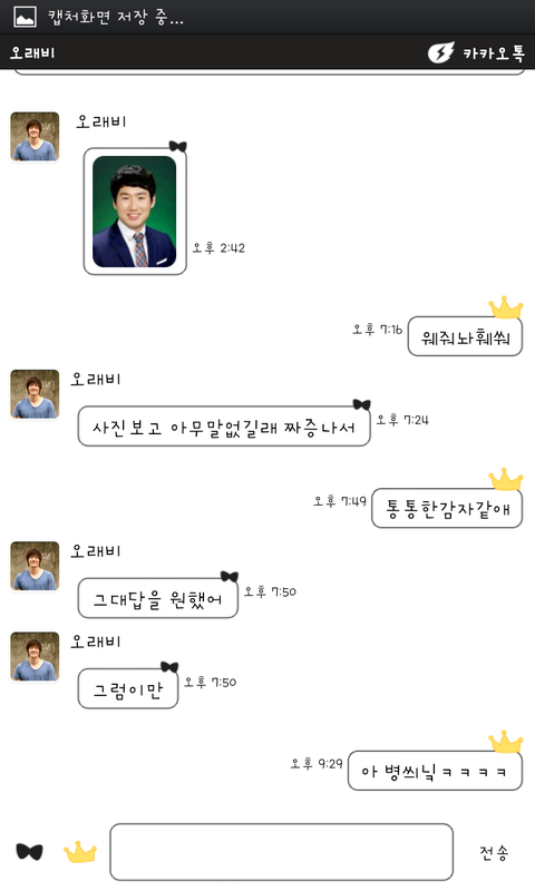 오빠가 카톡이 왔어요 ㅋㅋㅋ