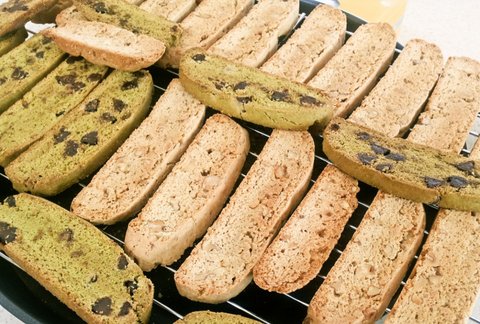 연두색은 녹차 초코칩 비스코티 나머지는 모카 호두 비스코티