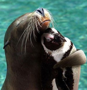 서로 쓰담쓰담 하고있는 귀여운 동물들