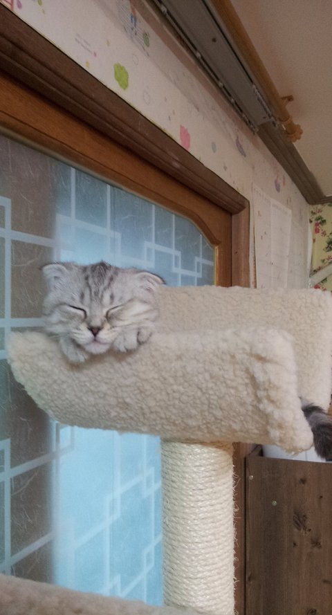 '캣타워에서능 이렇게 자는거라냥~'
