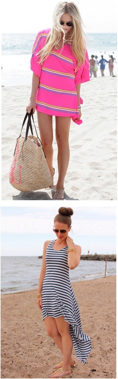 보기만해도 시원한 컬러감의 스트라이프 원피스네요