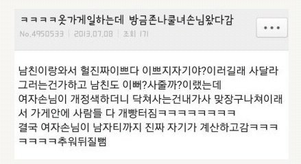 쿨한 여자 손님 왔다감ㅋㅋㅋㅋ