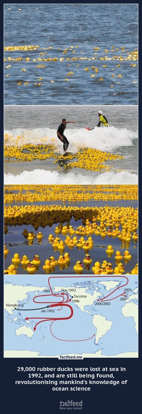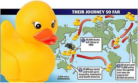 1992년 중국에서 고무 오리 인형을 실은 배가 출항했는데 한국 근처에서 폭풍을 만나 오리인형이 다 쏟아짐