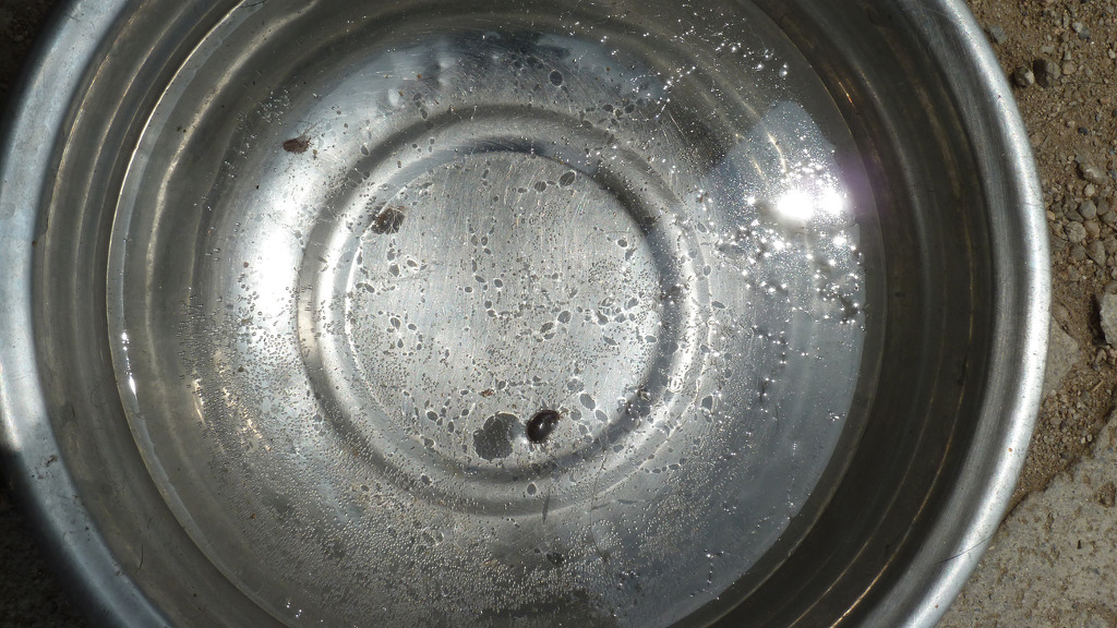 어디 도망가 다른 개들에게 붙을까 물그릇에 담아놓으신 사진