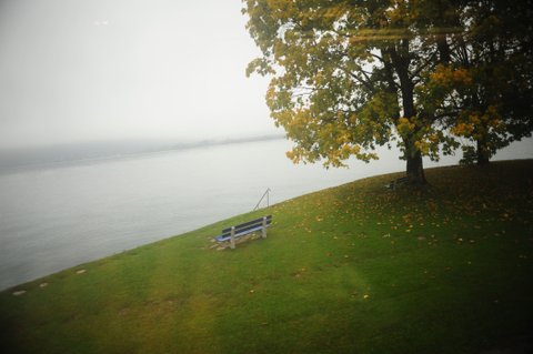 셔터를 쉴 새 없이 눌러대다가 호숫가를 바라보는 벤치를 하나 보았어요.