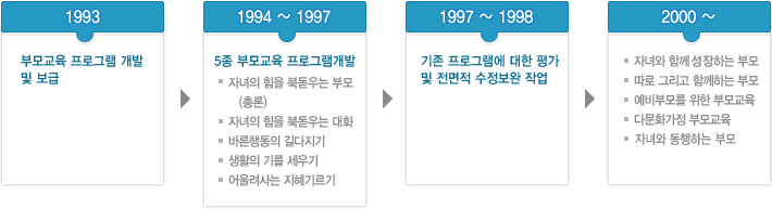 한국청소년상담복지개발원은 건전한 청소년육성을 위한 부모교육의 중요성을 인식하여 1993년도부터 부모교육 사업을 시행하고 있습니다.