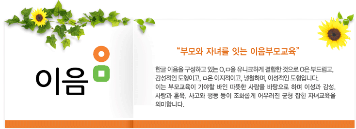 의 마음을 이어줄 수 있는 프로그램의 역할을 강조하고 있습니다.이음부모교육 BI 소개