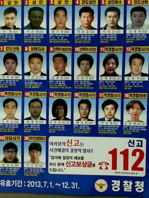 13년 7월 1일자 지명수배표임