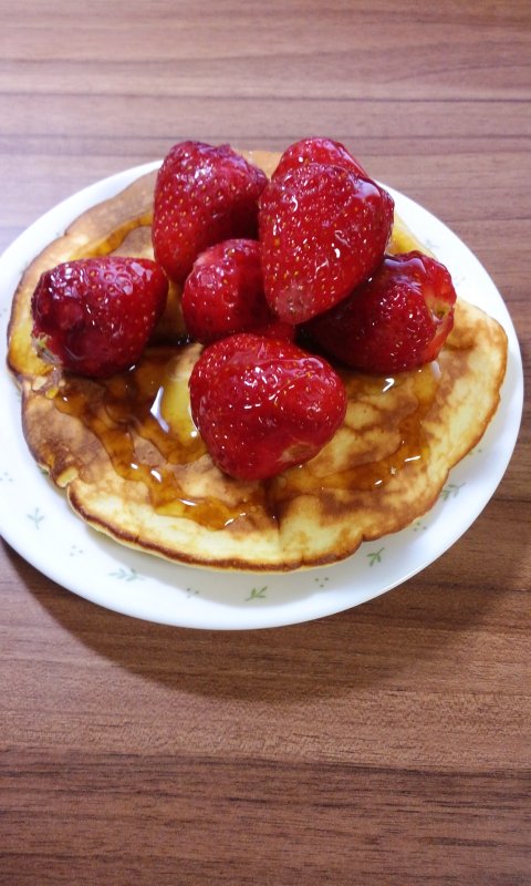 핫케익굽고 허전해서 딸기몇개올리고 시럽뿌리면 끝! 보기에도 좋고 맛도좋고!!