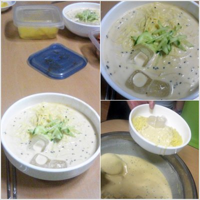 콩국수는 진짜 간단해요 콩가루 사가지고 적당한 비율로 물에 풀고 걸죽하게 만들면 끝