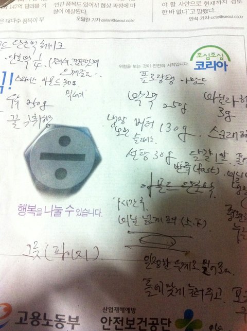 신문에 레시피 적으시는 다급함!!!