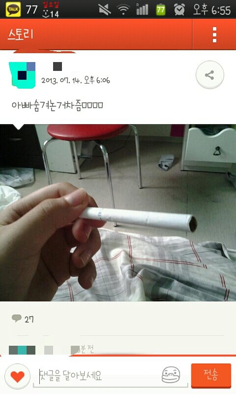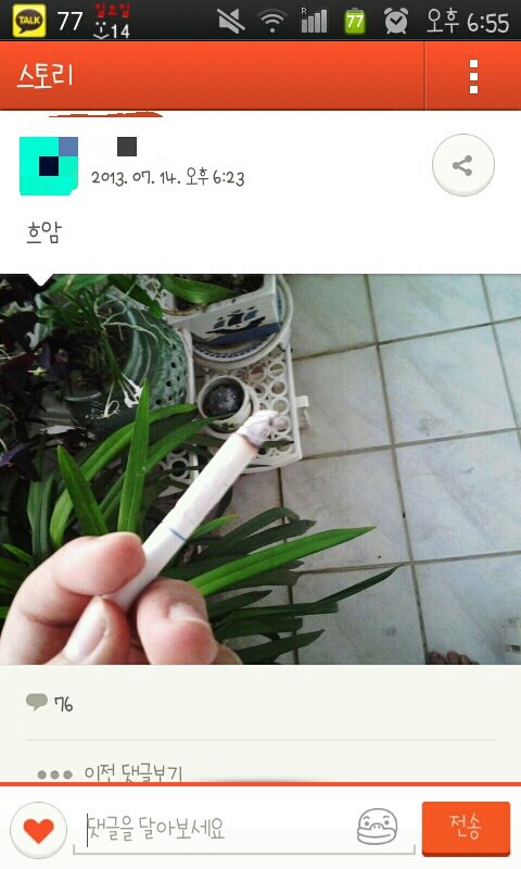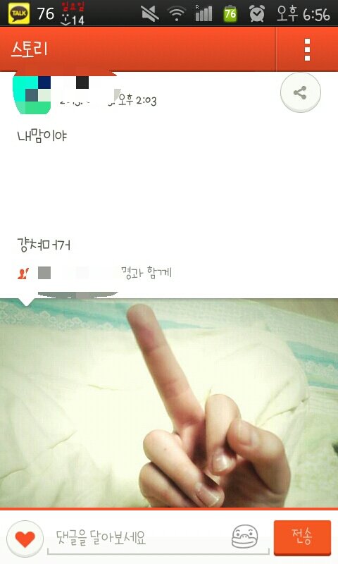 카스공유글들 보다가 중1인데 꽤귀엽게생긴애가 있는거임 그래서 카스를 들어가 봤음ㅋㅋㅋ근뎈ㅋㅋ와 요즘 중딩 다이러나 아주 중2병이 빨리도진거같았음 밑에는 카스캡쳐본임