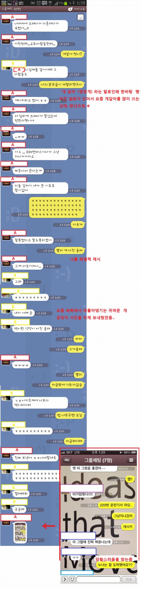 - 중간부: 우린 당연히 '개시키'만 쓴 상태인줄 알고 서둘러 귀여운 개 사진을 올리고 무마하라고 햇는데..우리가 시키는 대로 했다고 하곤 결과물로 저따위 캡쳐본을 보내줌...