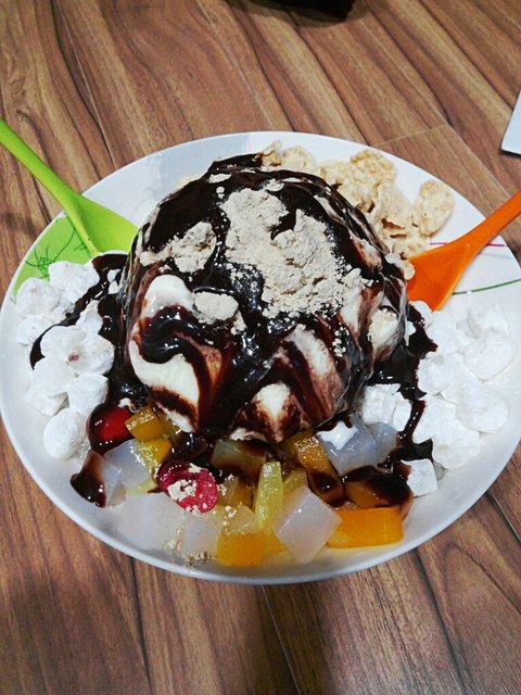 근데 과일이 없어서 대충 후르츠캌테일이랑 엄마가 만든 팥, 아이스크림, 우유, 떡 미숫가루, 초코시럽, 시리얼넣고 해먹은 빙슈~~