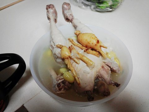 인삼 엄청 많이 넣고 은행, 마늘 잔뜩 넣고서 뜨끈하게 죽까지 한대접 다 했어요ㅎㅎ