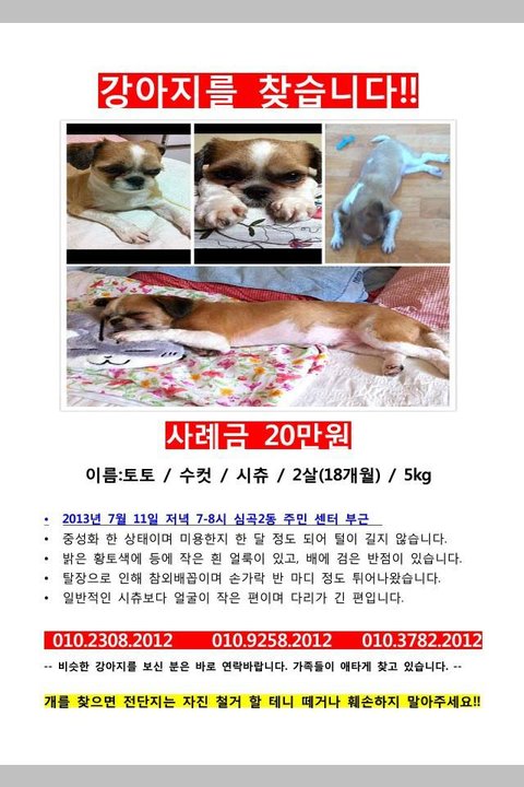 전단지도 붙이고 지인들에게 카톡도 보내고 페이스북에도 올려놓고 했는데 아직도 연락이 없네요.