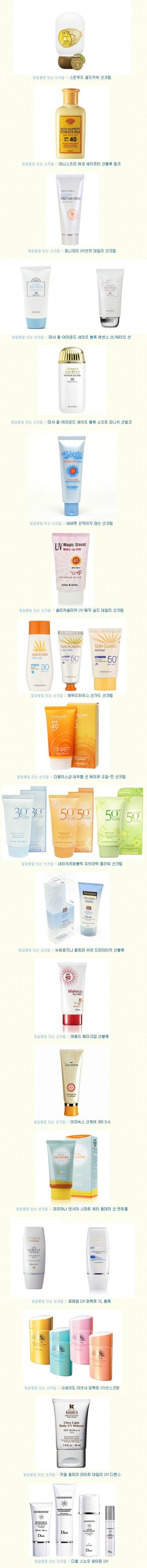 <발암 물질이 포함되어있는 선크림의 목록>