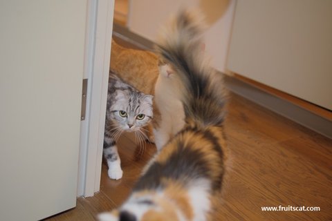 역시 노련한 넘버1, 넘버2 고양이입니다... 자기 손은 안 더럽히고... 막내를 시키다니....