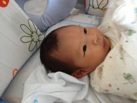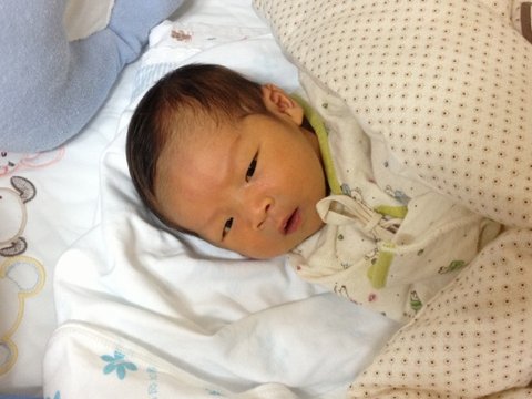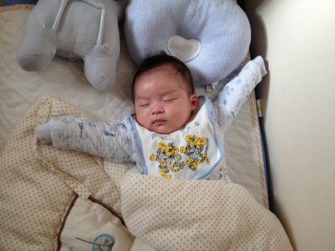 생후 35일경, 멍하니 천장을 보고 있는 아들입니다.