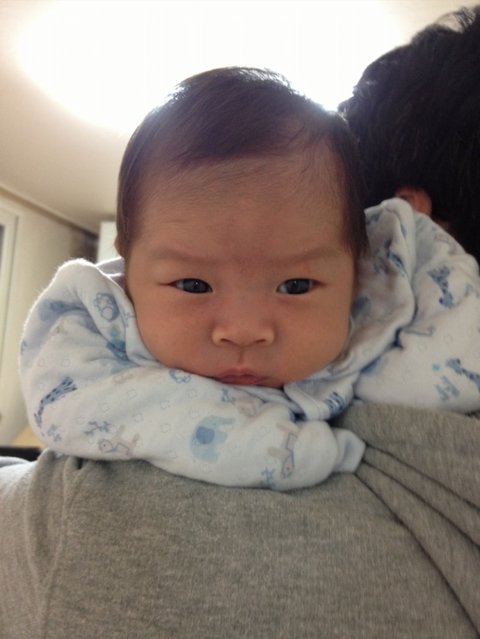2주간의 산후조리원에서 생활후, 집으로 돌아온후, 찍은 아들사진입니다.