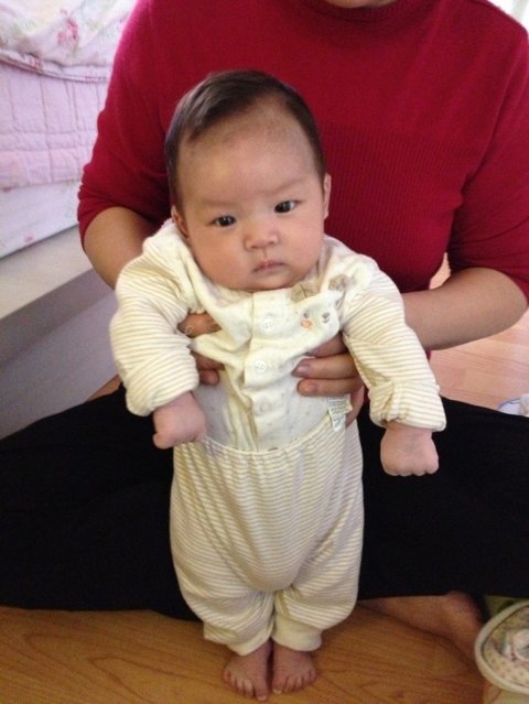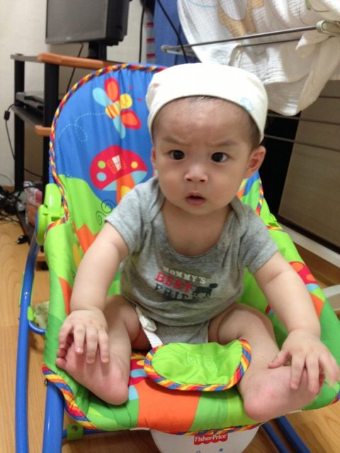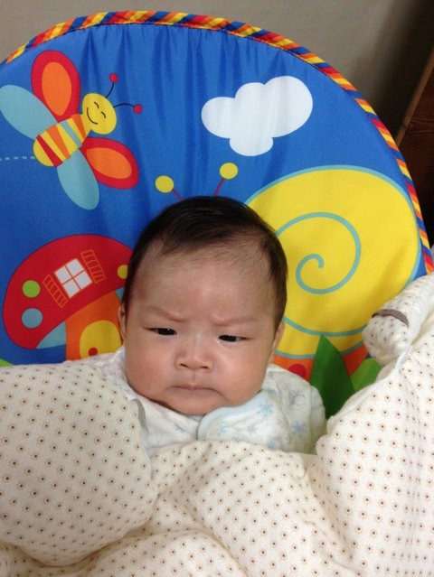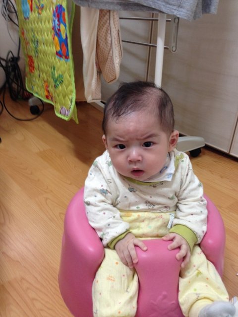 생후 200일경, 집에서 애용하는 바운서에 앉혀놓고 찍어보았습니다.
