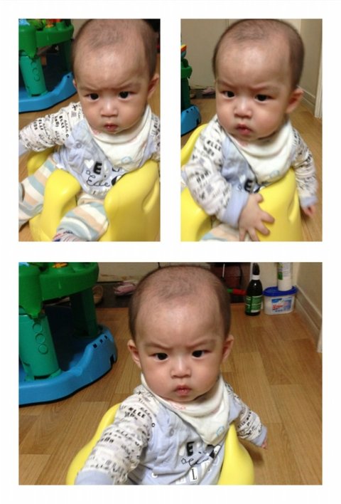 머리를 한번 밀면, 그런걱정이 없어질거란 이야기를 듣고, 삭발을 해주기전에 사진을 찍어 보았습니다. 웃는 사진찍어보려했는데, 여전히 잘안웃고 인상만 쓰고 있네요 -_-;