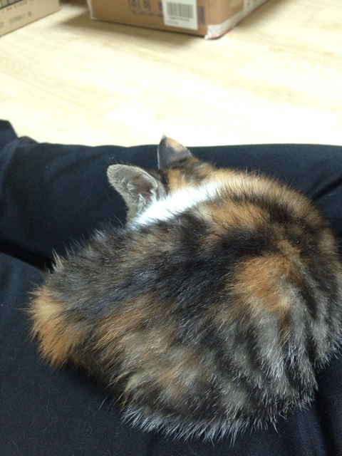 어미도 없고 혼자서 여기저기 두리번 거리더라고요 제 무릎에 올라타고