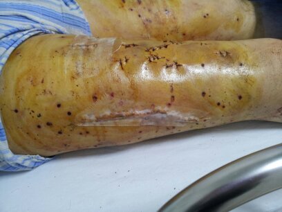 현재까지 3번에 재수술이 있었고, 아직 양쪽 허벅지에 납 총알이 20여발이 남아 있습니다. 그 납 총알을 평생을 몸에 지니고 살아가셔야 하고 언제 후유증으로 수술을 다시 하게 될지 모르는 상황입니다. 복용하고 있는 약으로 인해 이미 합병증은 발생하여 위가 부어오르고 위 벽엔 붉은 반점이 생겨 다른 약도 또 복용을 해야 되는 상황입니다.