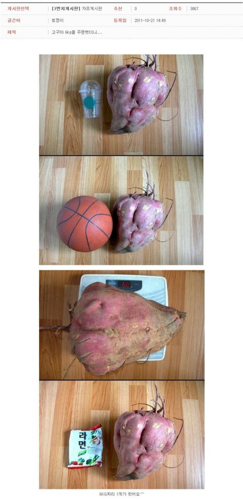 저렇게 큰 고구마 일반 판매용이 아니고 가축사료로 나가는 겁니다 .;;; 저걸 어떻게 쪄 먹으라고 완전 쓰레기 판매자임 .
