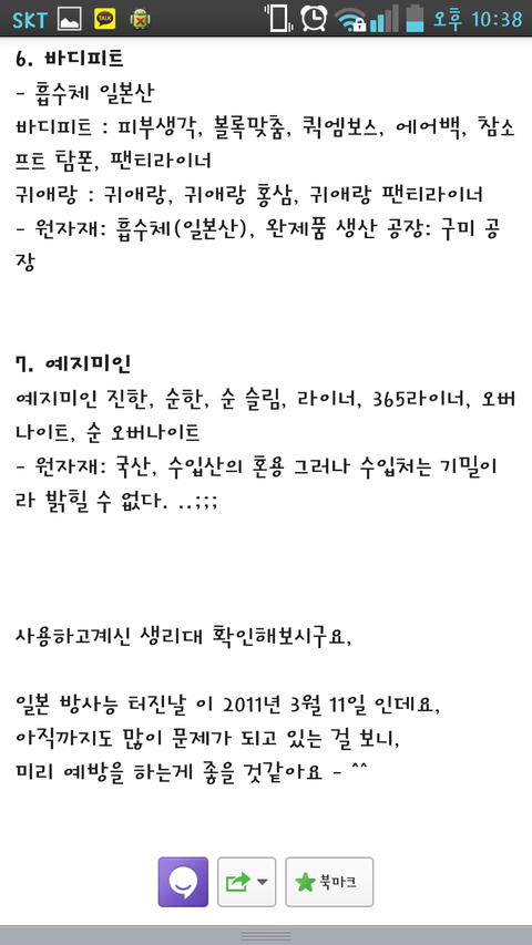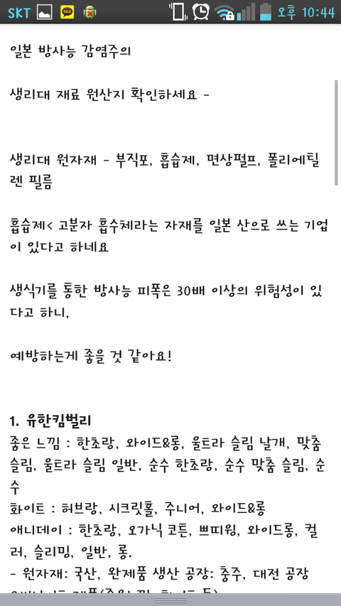 일본 방사능 주위 생리대
