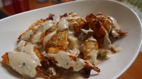 새우튀김을 저번처럼. 빵가루 입혀서 깔라마리처럼 튀기기도하지만.