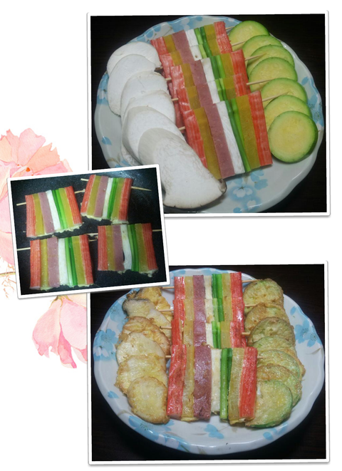 요건 새송이전. 꼬치. 애호박전이예요.