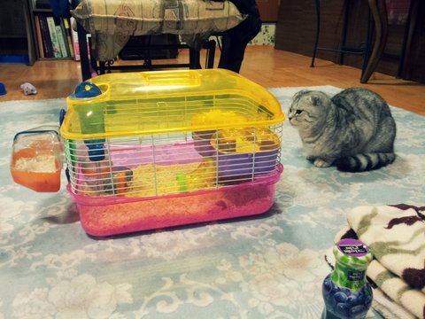 우리집 진돗개랑 학교산책하는데 햄스터를 잡아서 불쌍해 데려왔더니 저도 고양이라고 그 잠많은 애가 아침에 일어나보니 눈이 시뻘게져서 잠도안자고 보초를 서고있는거예요ㅋㅋㅋㅋㅋㅋㅋㅋㅋ