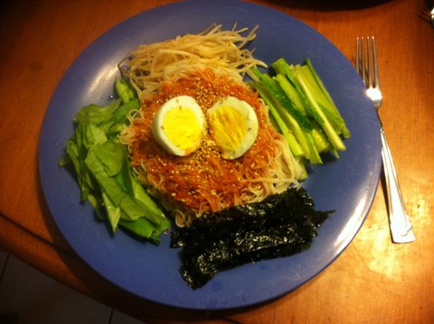 비빔면.. 말이필요없는^^ 첫시도였지만 맛은 기가막혔어요..