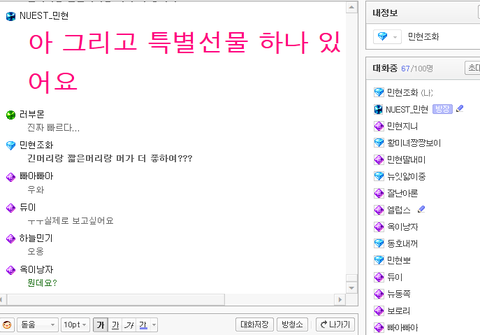 5명이 따로따로채팅했는데 광클하다보니깐 민현걸림ㅋㅋㅋㅋㅋㅋ