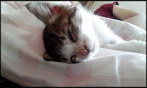 이땐 골목에서 주어온지 며칠안지났을때라.. 감기약도 먹여야하고