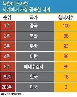 북괴가 조사한 세계에서 가장 행복한 나라 랭킹