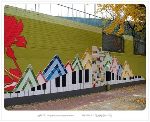 기와 등을 붙이는 벽화 제작 방식으로 진행 됩니다