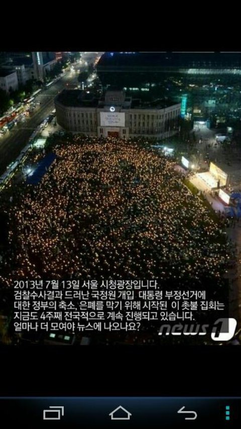 글쓴이입니다.. 참 논란이 많네요.. 근데 신기한게.. 이게 톡커들의 선택에서 4위정도 하고있었는데 아예 사라져버렸네요.. 네이트판 시스템이 그런건진 모르겠지만 이것도 일종의 여론조작이 아닐까 싶네요.. 지금 보수분들하고 진보분들이 싸우시는데 제 입장은 이래요.. 일단 국정원의 여론조작과 선거개입이 확실시 된 이상 이건 옳지않은 시위라고 생각하지 않아요.. 뜻이 다르다고하여 좌좀, 좌빨 뭐 이런 용어들을 쓰시는데.. 정말 안타깝네요.. 그리고 2만명이 모인게 뭐냐고 이러시는 분들도 계시는데 물론 반대하는분들도 계신건 알지만 저런게 알려지면 2만명이 20만명이되고 200만명이 되지않을까요? 그리고 다시한번말씀드리지만.. 우리나라는 민주주의 입니다.. 이점 명심해주시기바랍니다