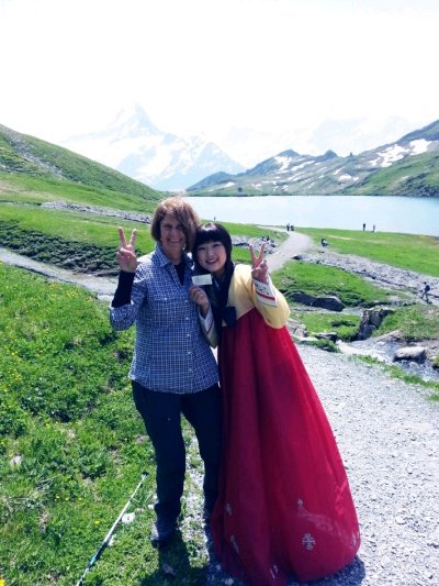 한복을 입고 스위스를 여행하고 트레킹하는것..