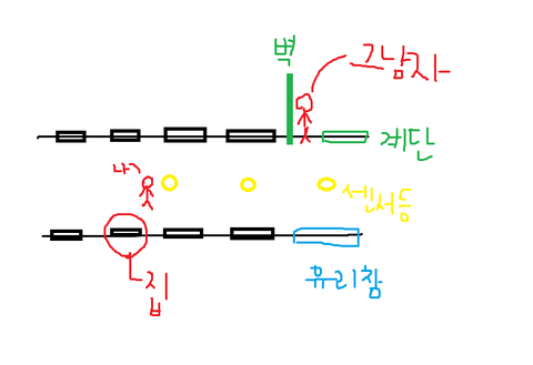 그래서 벽을향해 누구세요 라고 했더니 움직임이 없어서인지 계단쪽 센서등이 꺼졌고