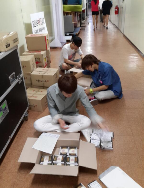 스티커붙이고 있는 인피니트ㅠㅠㅠ