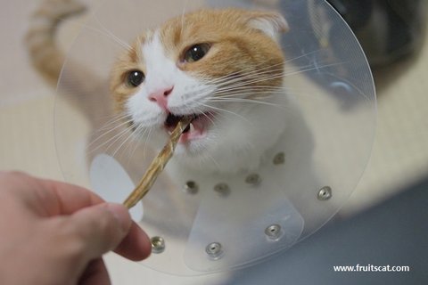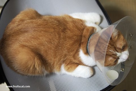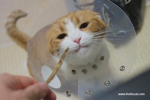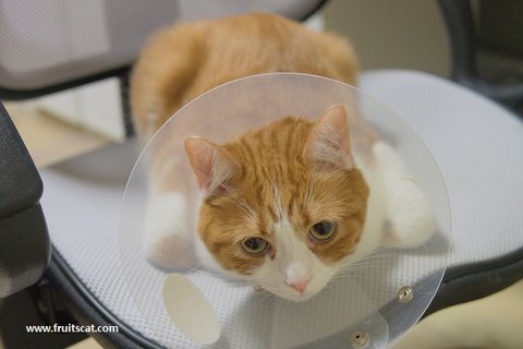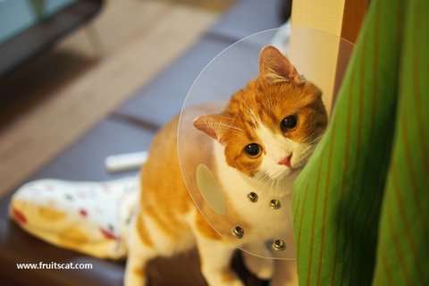 유봉이 젤리가 또... 이번엔 왼쪽 앞발 새끼발가락 젤리에 상처가 나서 깔대기를 씌었습니다...