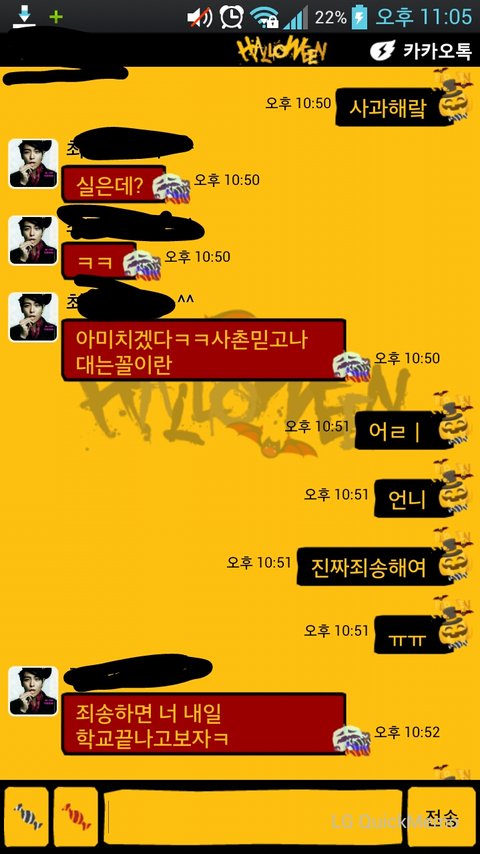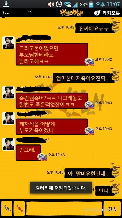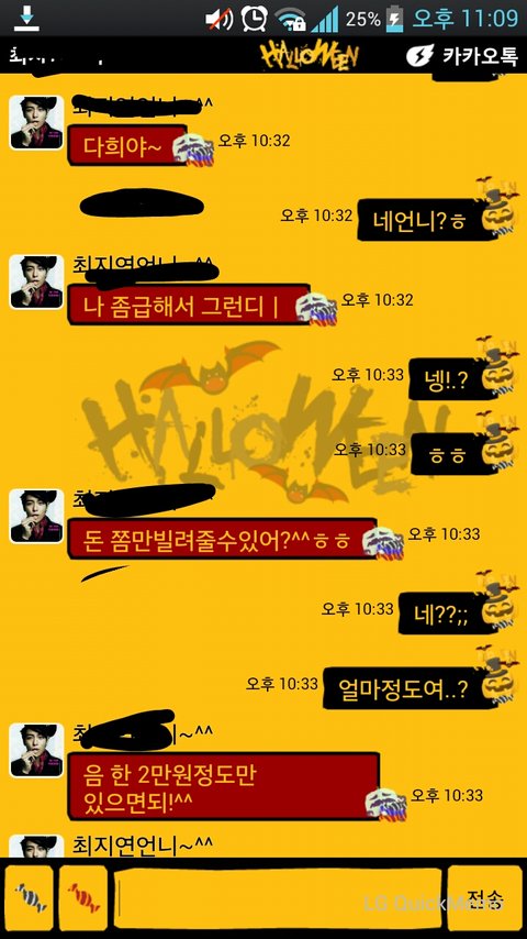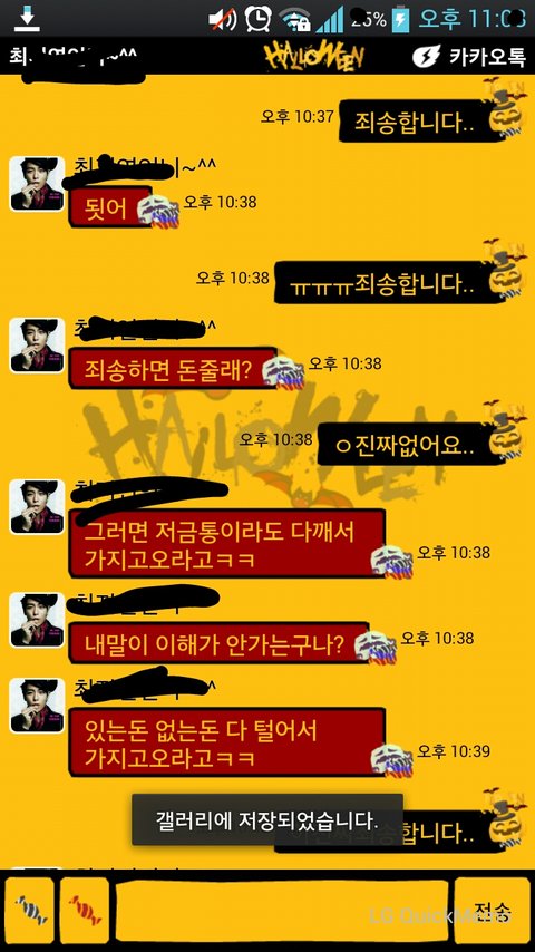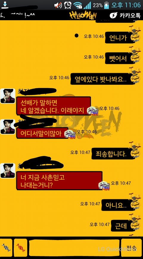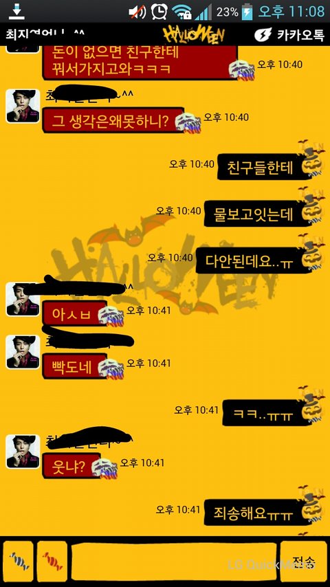 안녕하세요ㅠㅠ아까전에 2학년선배가 톡오더니 돈좀빌려달래서 거절했더니 쌍욕하고 밟는다네요;;