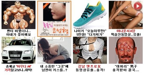 다시 말하면 인터넷 언론사의 배너광고를 보면서 여러분은 국내, 일본, 태국, 러시아 등의 성인사이트를 간접적으로 보고 계신겁니다. 아래 사진들은 이미 많은 분들이 인터넷 언론사를 통해 너무 많이 접한 배너 광고들 입니다.