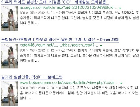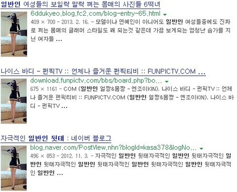 이미 오래 전 부터 윤리, 종교단체들에서 인터넷 언론사들의 성인배너 광고에 음란성을 지적하고 있는 걸로 알고 있습니다. 하지만 윤리, 종교단체들은 노출수위만 지적하고 계신데 저는 노출수위를 넘어 사진들의 출처까지 지적하고 싶습니다. 그럼 '출처?' '그거 모델들 아니야?' 라고 생각하시겠지만 현실은 모델도 아니고, 국내 성인사이트, 일본 몰카 사이트, 이제는 심지어 태국 성인사이트, 러시아 성인사이트도 있습니다.