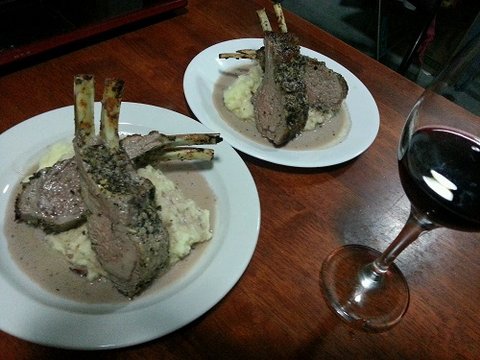 형이 놀러온 기념으로 만든 양 갈비 & 매쉬 포테이토. 소스는 크림이랑 레드와인으로 만듦.