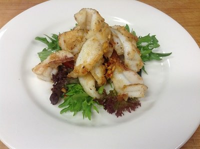 밀가루 살짝 묻혀서 굽고. 드레싱(피쉬소스, 라임쥬스, 스윗칠리 기타등등)에 샐러드 버무리면 끝