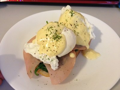 빵 + 시금치 + 햄 + 수란 + 홀랜다이즈 소스